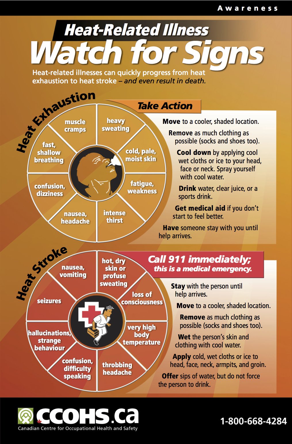 Great safety and health materials can come from a variety of organizations and programs. Here is a great info-graphic on heat – related illness from the Canadian Centre for Occupational Health and Safety and an info- graphic on skin cancer prevention from the Center for Construction Research and Training.